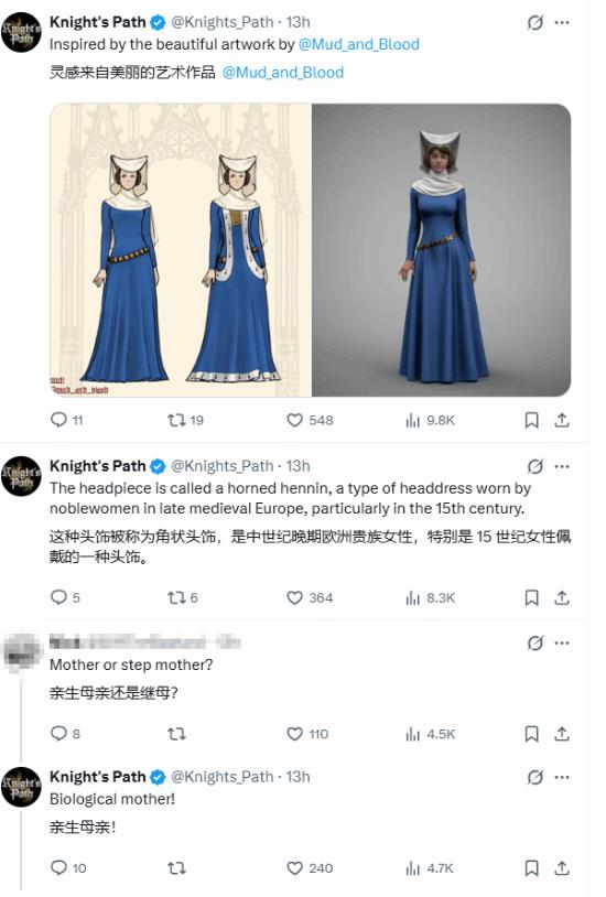 有玩家注意到角色造型里的hennin装饰,觉得设计很有新意。官方对此回应,这样的设计是为了贴合中世纪背景,做到细节还原。