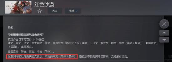 在官方此前的公告中明确提到,在亚洲地区以外购买的实体版不支持中文(简体/繁体),数字版则不受影响,支持所有语言。