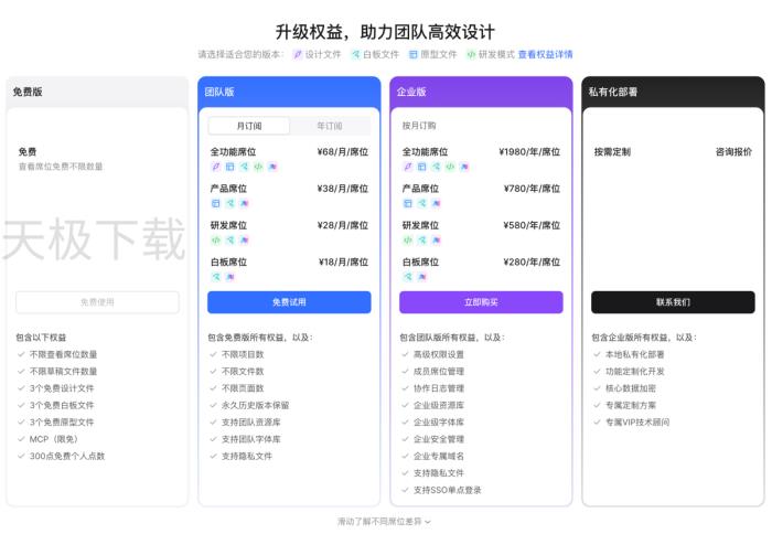 Pixso AI这款原生UI设计工具并非全量免费,也不是完全付费使用,而是采用“基础免费额度 付费解锁高级权益”的模式,新用户注册即可获赠免费的AI使用点数,日常也提供每日固定的免费生成次数,足以满足个人用户轻量级的UI设计、素材生成等基础需求。而针对高频专业使用场景,想要解锁无限制生成次数、全量高阶AI功能、更快的生成速度、企业级协作与专属技术支持等权益,则需要付费开通专业版、企业版订阅,或是单独购买AI使用点数来实现。