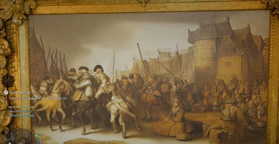 游戏中几乎所有庄园的墙壁上,都有AI生成的图案,无论是橡木盾庄园还是玛尼宅邸,画作都有明显的劣质AI痕迹,类似早期Dall-E的简陋效果。这些画作画风怪异,有的肖像没有眼球,城堡结构不合理,群像脸部扭曲。