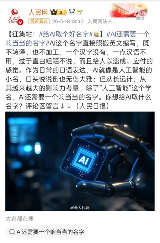 AI天天用,却连个像样的中文名都没有?最近,人民网的一则征名帖,让网友们的脑洞直接炸开了锅。