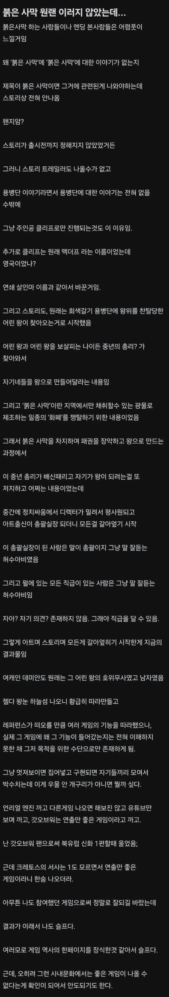 最近,游戏社区里出现了两位声称来自Pearl Abyss内部的爆料者的帖子,迅速引起了大家的关注。这些帖子揭露了《红色沙漠》开发过程中存在的混乱状况,也让人们看到了这款游戏口碑不佳的背后原因。