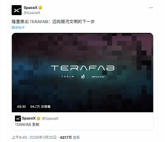 他联合SpaceX、特斯拉与xAI,在X平台正式官宣TERAFAB项目。这座被称为“全球最大2nm先进芯片工厂”的超级设施,将落户德州奥斯汀,成为人类算力史上的新里程碑。