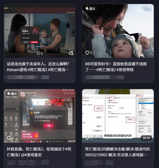 随着独占结束,更多玩家得以接触这款作品,也带动了新一轮直播热潮。然而,近期有不少玩家反映,在抖音直播《死亡搁浅2》时,账号竟突然被封禁,而原因则让人哭笑不得——游戏中的宝宝“洛”,似乎因画面过于真实,被系统误判为未成年人出镜。
