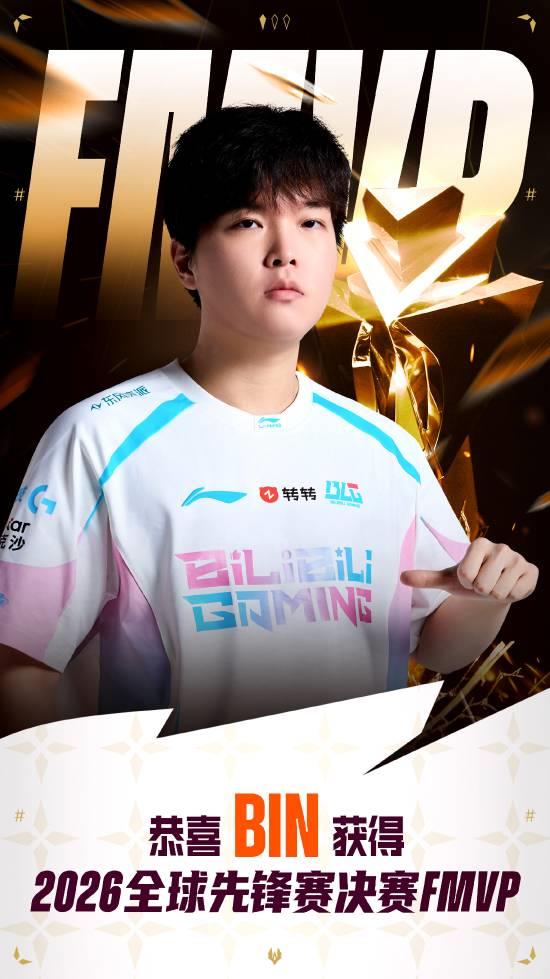 赛事官方也在赛后公布了本场决赛的FMVP,为BLG选手Bin。