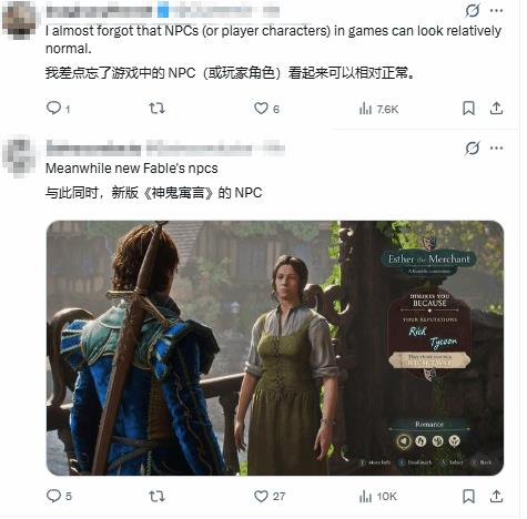 除此之外,还有玩家将《红色沙漠》的NPC和新版《神鬼寓言》的NPC进行对比,暗示两款游戏的NPC设计存在明显差异。其实《红色沙漠》自曝光以来,就因角色设计备受关注,这次NPC相关内容的发布,进一步放大了玩家对游戏角色设计的讨论热情。