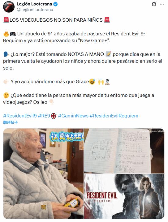 91岁杨老头火遍全球,真是让世界玩家都看傻了:这老哥有巨星范儿!之前我们提到过,B站的知名UP主@骨灰级游戏玩家_杨老头(杨炳林)已经完成了《生化危机9:安魂曲》的通关,还开始了第二轮游戏。