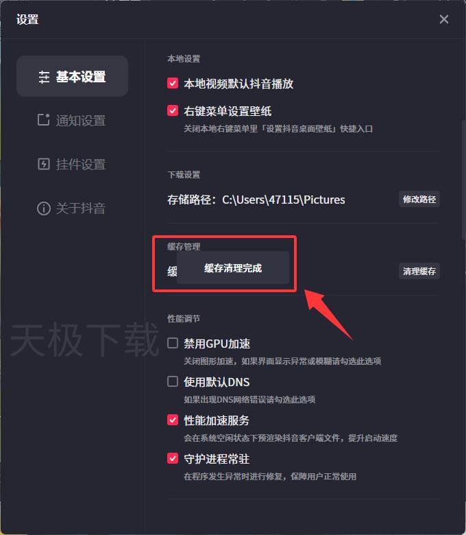 3.出现清理完成后,重启抖音电脑版客户端。