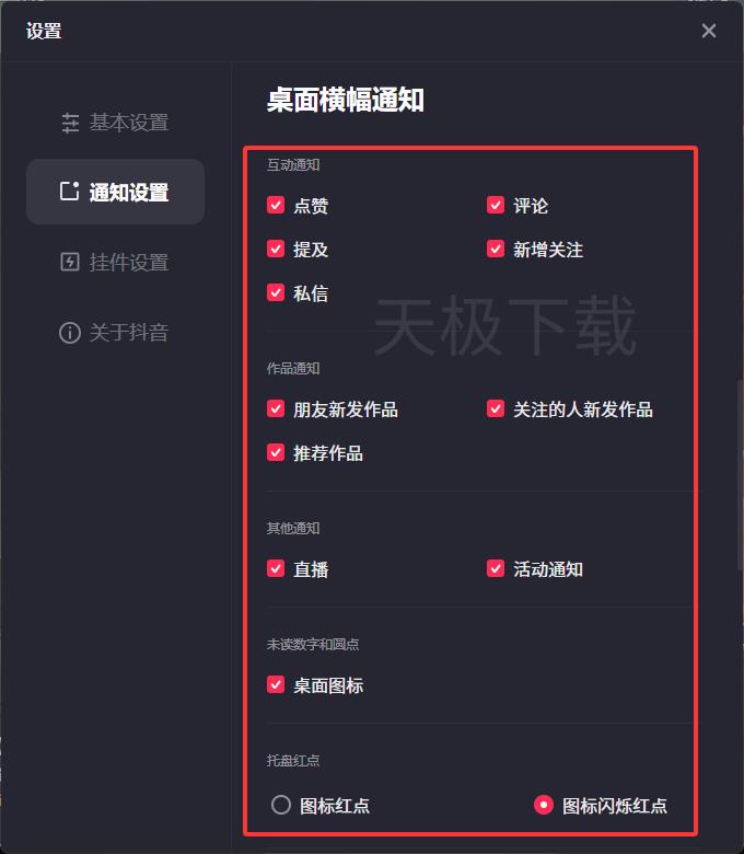 3.设置完成后即可彻底关闭抖音桌面版通知信息