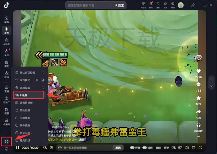 以下是如何关闭抖音AI入口的步骤,适用于抖音电脑版V7.0.0版本。