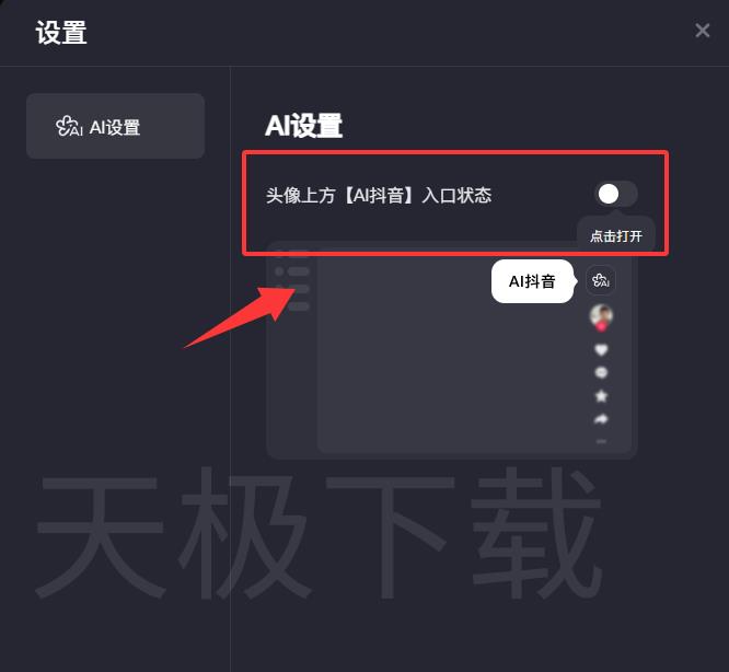 2.点击左侧菜单栏下方的齿轮设置按键,选择【AI设置】。