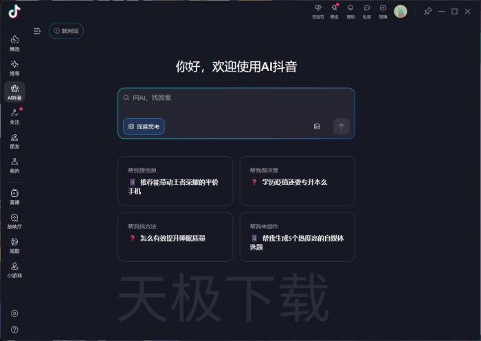 抖音电脑版的AI抖音主要负责信息检索与智能问答,不直接生成视频。若需在电脑上生成抖音视频,建议选择即梦AI、剪映专业版等工具,这些工具均与抖音账号互通,生成的视频可直接发布到抖音平台。