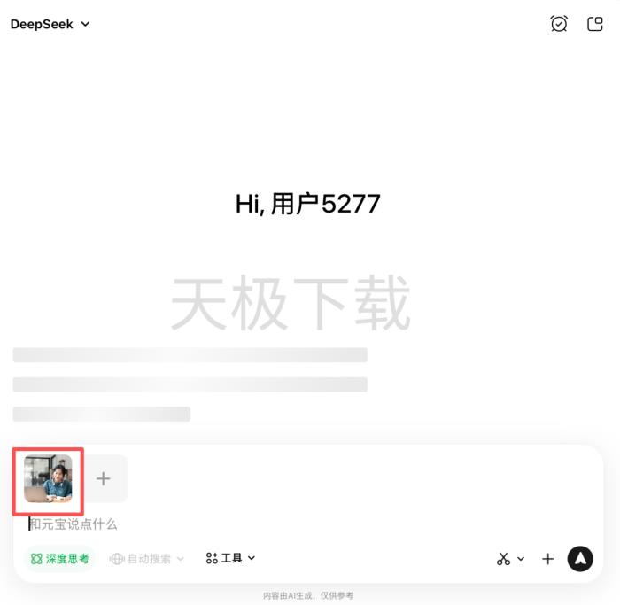 1.打开腾讯元宝,将需要更改发型的图片拖到消息框内。