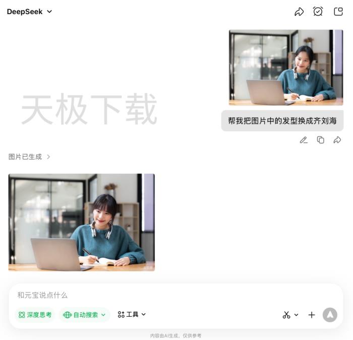 3.稍等片刻,腾讯元宝就会将照片里人物的发型换成对应发型。