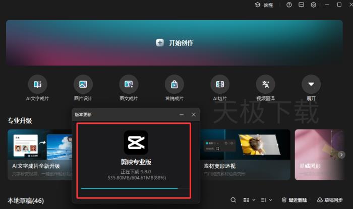 4.等待剪映下载内测版程序。