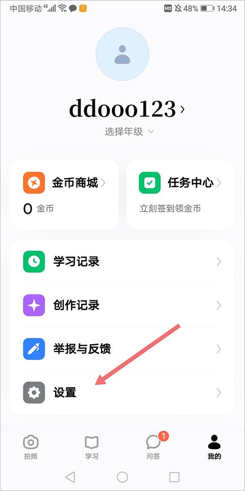 2、然后在设置页面中将模式从学生模式切换至家长模式