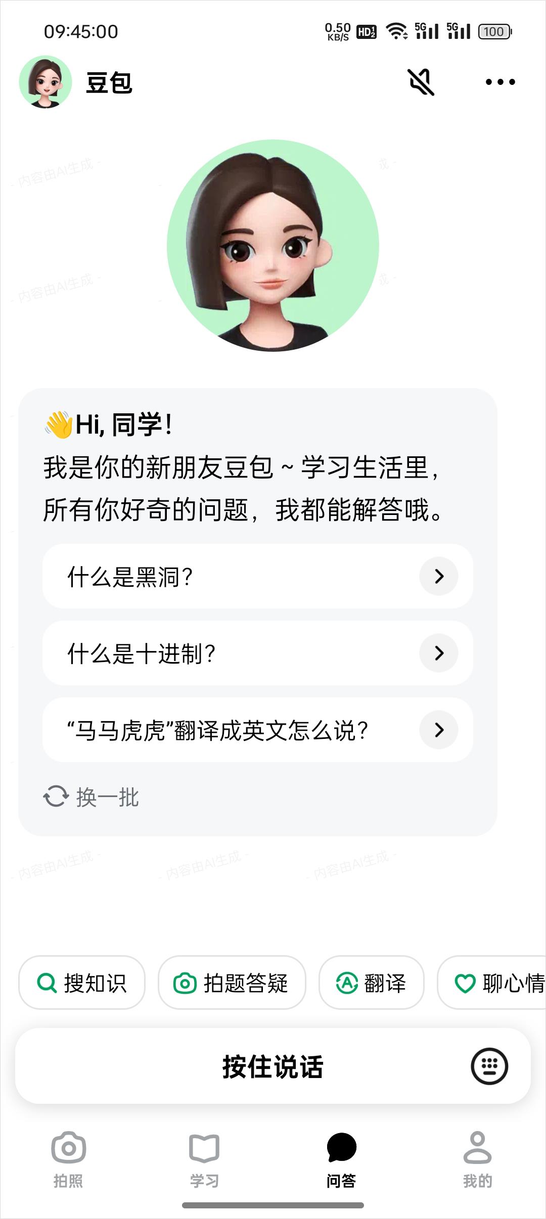 5、成长挚友:学习遇到烦心事不知道和谁讲?快去和豆包聊一聊,它是你专属的虚拟朋友,24小时陪伴在你的身边,倾听、提供建议、鼓励和帮助它都能行。
