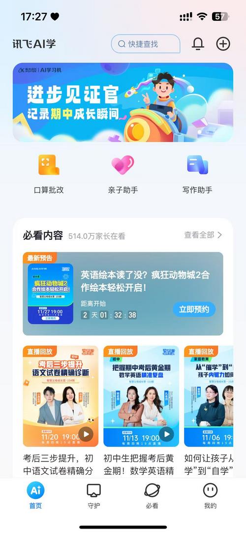 讯飞AI学是专为科大讯飞学习机用户打造的智能家校互动平台,家长能随时了解孩子的学习动态,比如各科表现、作业完成情况和每天的学习进度。它还提供学情分析,家长可以通过学习报告发现孩子的弱项,调整辅导方法,既能避免孩子沉迷娱乐,又能提高学习效率。