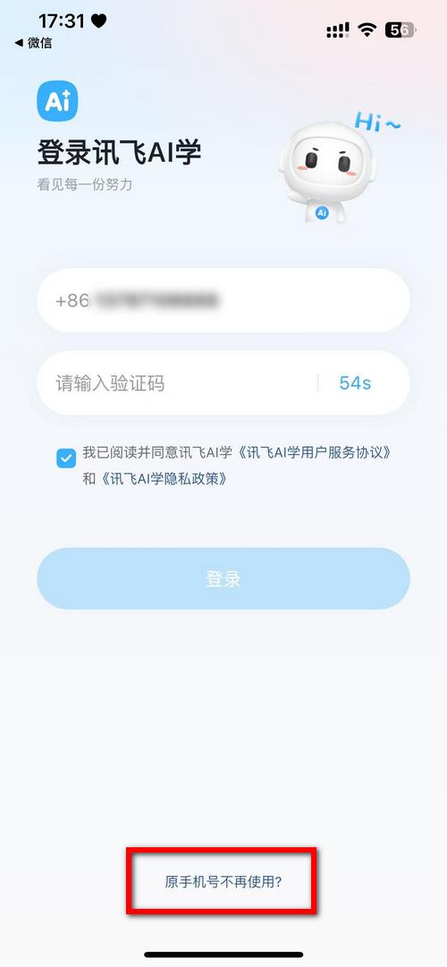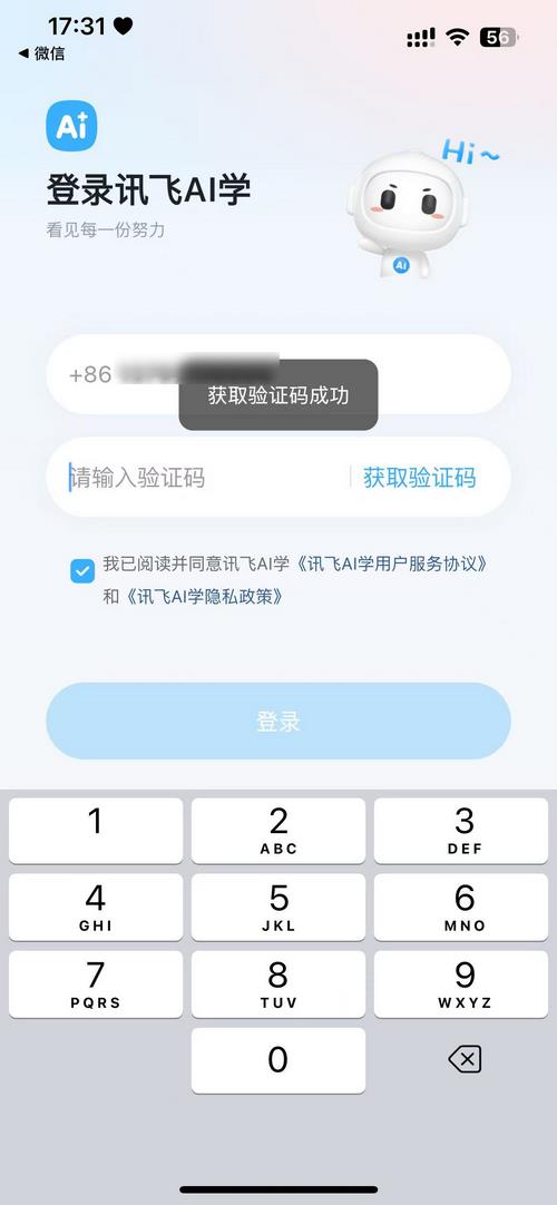 1.打开讯飞AI学,输入手机号。