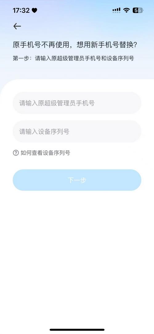 5.输入原本的手机号,以及设备序列号。