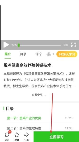 6、在课程界面点击立即学习即可完成课程的报名学习