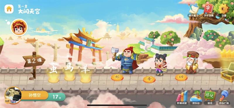2.悟空识字免费手机版以西游记为故事背景,让孩子学会自由阅读;
