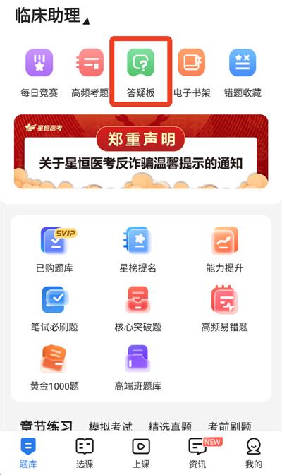 1、在【题库】这一栏,点击上方的【答疑版】功能。