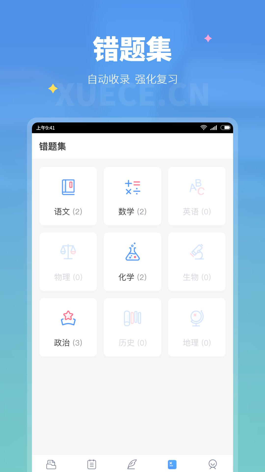 学测网学生版APP旨在为在校学生提供考试学情分析和错题集。