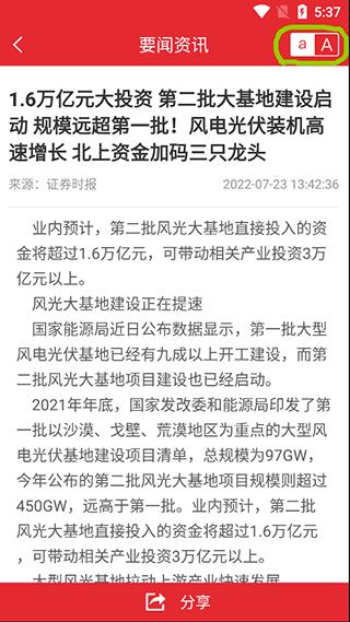 1、打开软件,在资讯界面的找到要闻、风口机会、投顾、股票,这四个资讯都有支持调节字体大小的功能,基本设计在右上角;