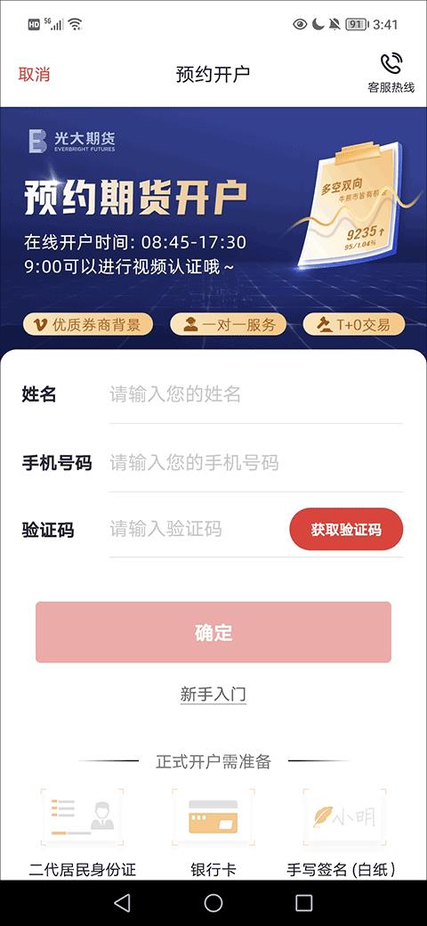 有了光大期货e开户app,用户8分钟即可完成线上办理开户,飞一般的开户体验,让你快速开户完成交易。除了开户,该应用还有专业的投研团队,高效便捷的服务网络,业内顶尖的IT技术服务支持,为产业客户提供大宗商品产业链的个性化套期保值及期货衍生品服务;为机构、个人投资者提供套保、套利、跨品种、跨市场及程序化交易等多种交易策略及工具的组合,全方位满足您多样化的金融衍生品服务需求。