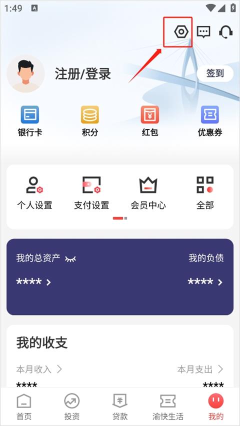 重庆农商行app如何开启语音唤醒?1、进入app之后选择“我的”页面中的“设置”按钮。