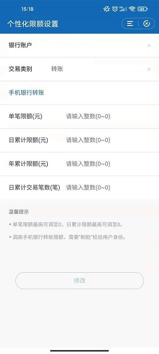中国建设银行手机银行app转账限额怎么修改1、打开建设银行app最新版,点击左上角三根横线,在安全中心点击个性化限额设置。