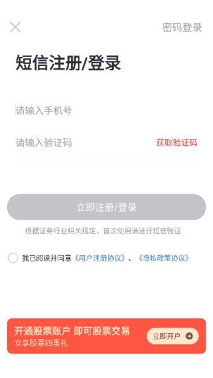 财信证券app官方版使用说明1、打开app进入首页,可以使用手机号与验证码登录