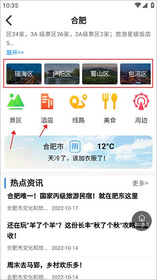 2、首页向下划,找到印象安徽,选择你想了解的城市点击进去,以合肥为例