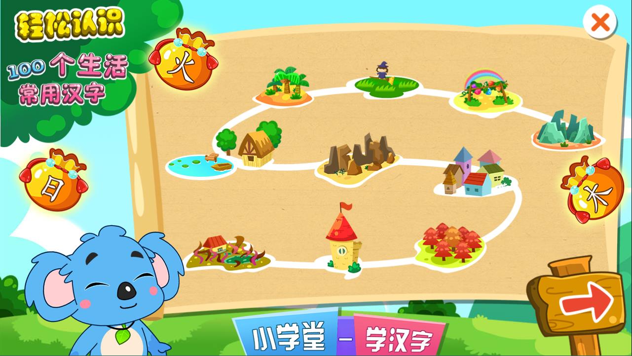 儿童宝宝学汉字app怎么用?1、进入app后,在主页面点击右下角的箭头