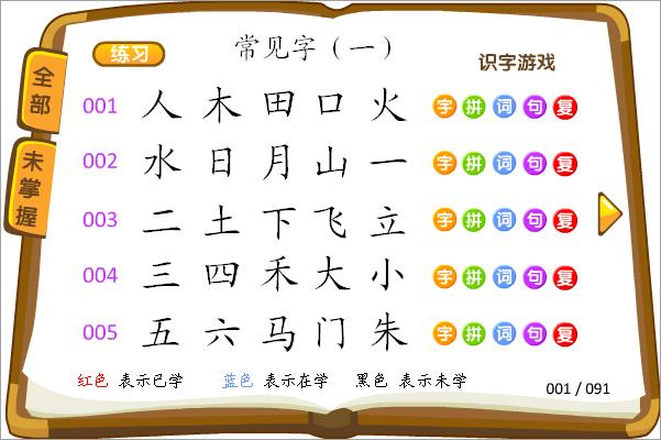 -通过识字游戏中的“字”“拼”“词”“句”“复”,能快速、精准的进行复习