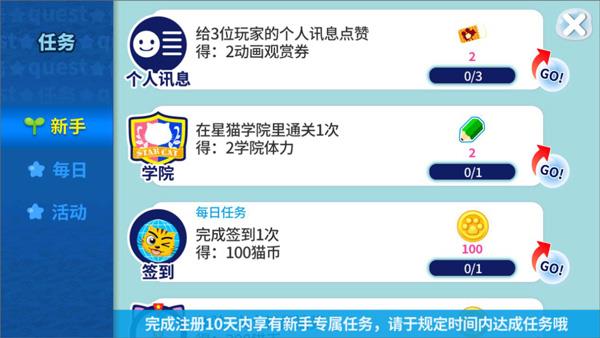 4、打开任务栏,用户可查看新手任务、每日学习任务,完成任务可获得金币奖励;