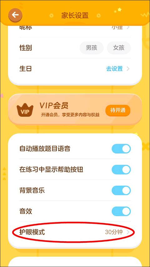 有道少儿思维app如何设置使用时间学习固然重要,但如果小朋友看久了手机眼睛或多或少会受到一点损伤,有道少儿思维app考虑到这点特意给应用添加了一个护眼模式,可以让家长设置好使用时间,保护小朋友们的身心健康,那这个模式该到哪进行设置呢?不急,小编这就带大家设置。