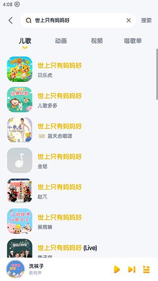 除此之外,酷狗儿歌手机版还提供了精选的儿童音乐播放列表和排行榜,让孩子们可以发现自己去寻找更多适合自己的歌曲。并且每首歌曲都是有着相对应的动画播放,可以提供孩子们的兴趣,使孩子们能够更加身临其境地参与到音乐中,增加娱乐性和学习的互动性。