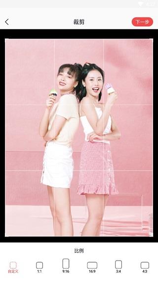 选好之后,开始进入裁剪部分,你可以通过调整边框进行图片裁剪,也能定义图片的屏幕占比,如1:1、9:16、16:9、3:4、4:3.