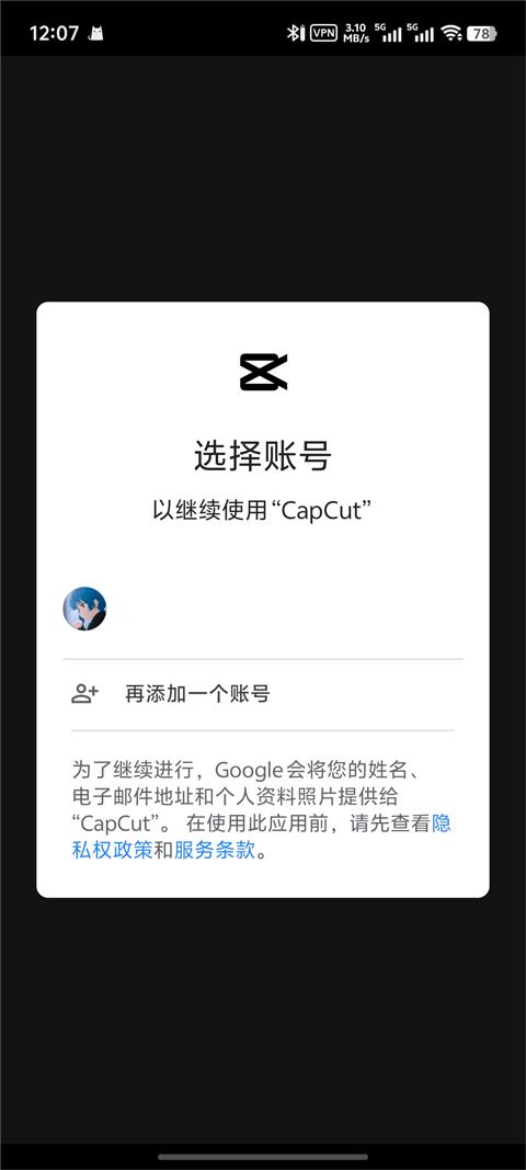 3、然后添加谷歌账号登录(此步骤需开启加速器,否则会提示网络异常);