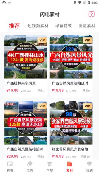 4.在素材中推荐大量优秀素材,包括短视频素材、绿幕特效、高清素材等。