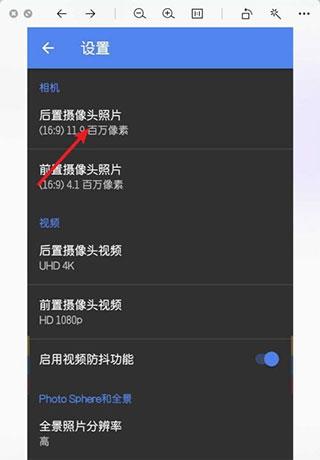 最后设置照片分辨率,点击照片镜头,选择你要的分辨率。