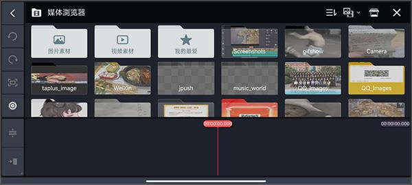 3、选择“媒体”,从相册中导入视频素材。