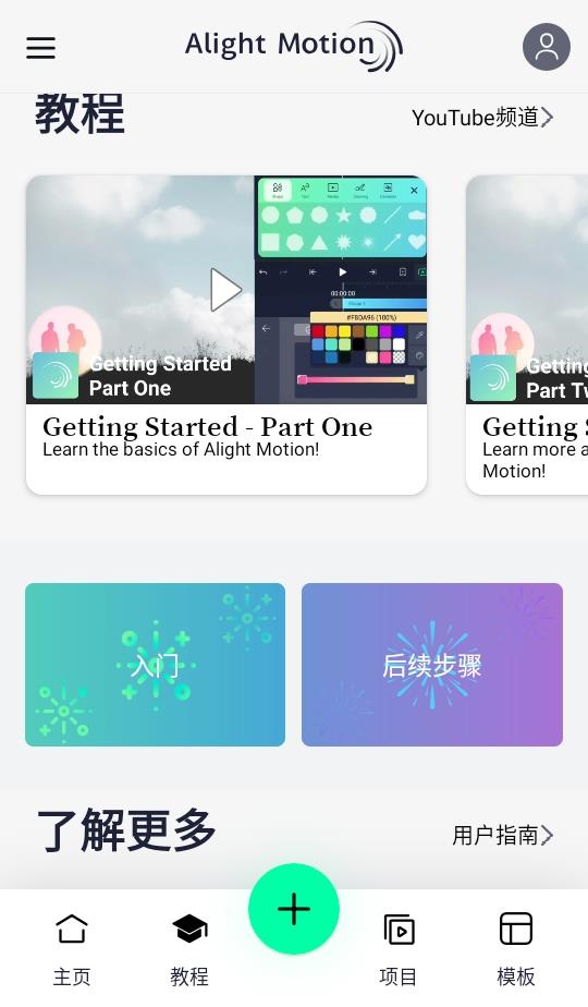 1、在蜻蜓手游下载并打开alight motion剪辑软件最新版,进入首页;