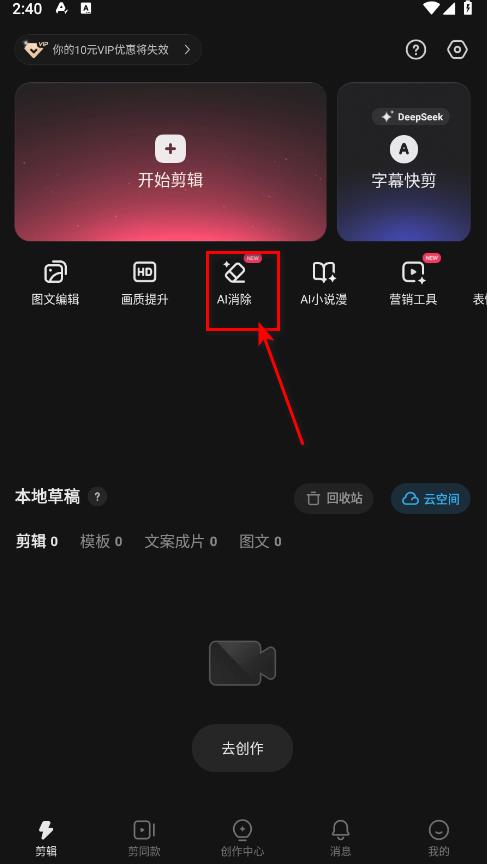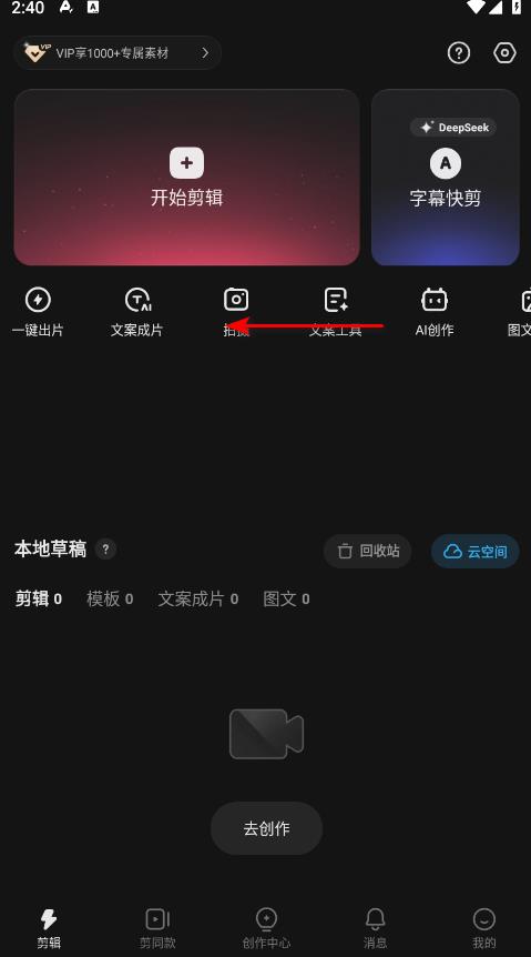 2、点击首页剪辑。