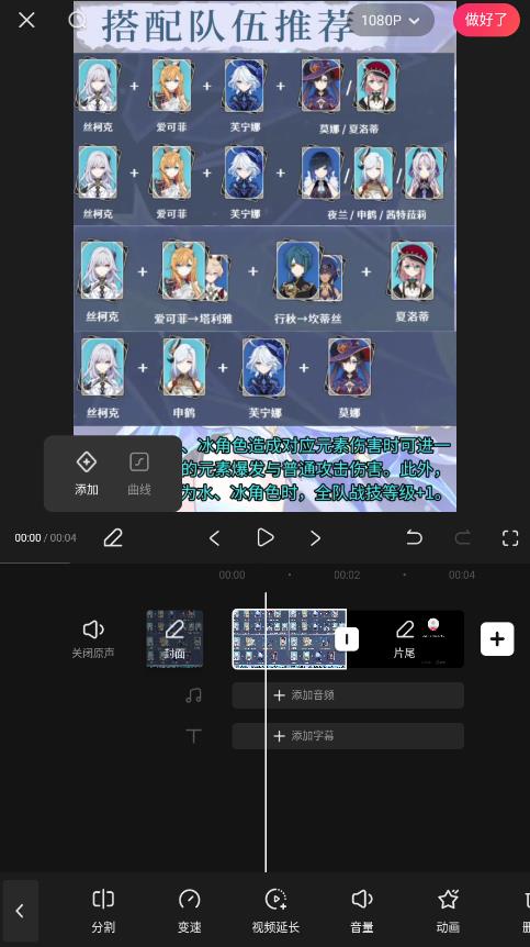4、通过下方的不同按钮对视频进行剪辑:剪辑、素材、调整、音效、字幕。