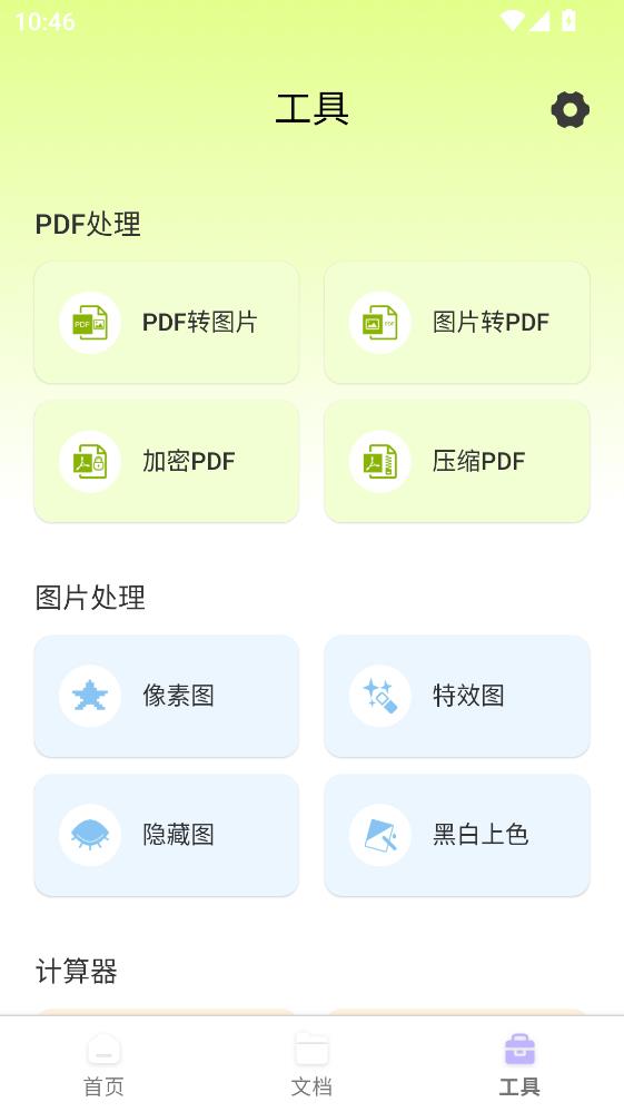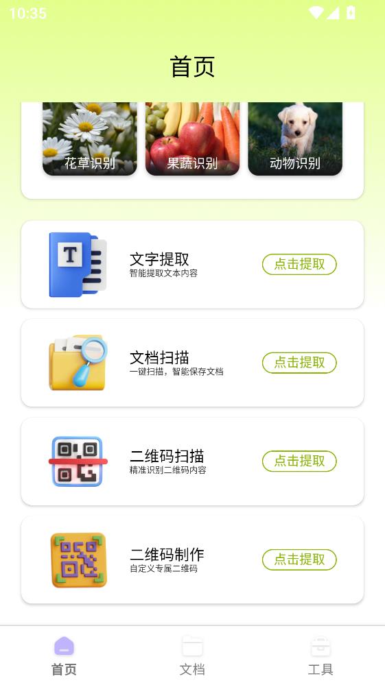 1.首页打开之后向下翻,可以看到有一个文档扫描还有一个二维码扫描。