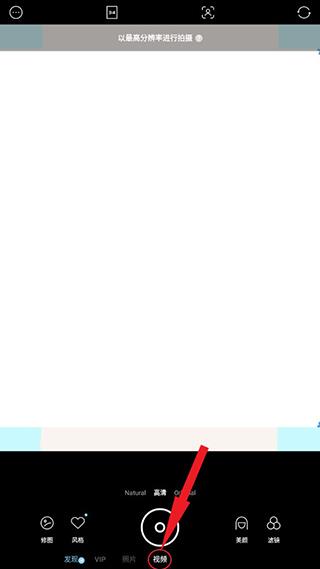 用户点击下方视频按钮,可以进入视频拍摄模式。