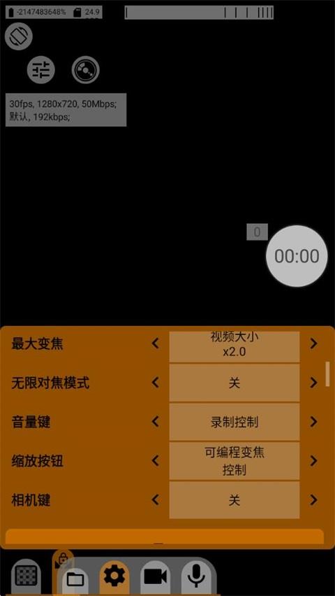 这里整个软件最核心部分,从左到右依次是视频文件,软件设置,拍摄设置,视频设置,录音设置。